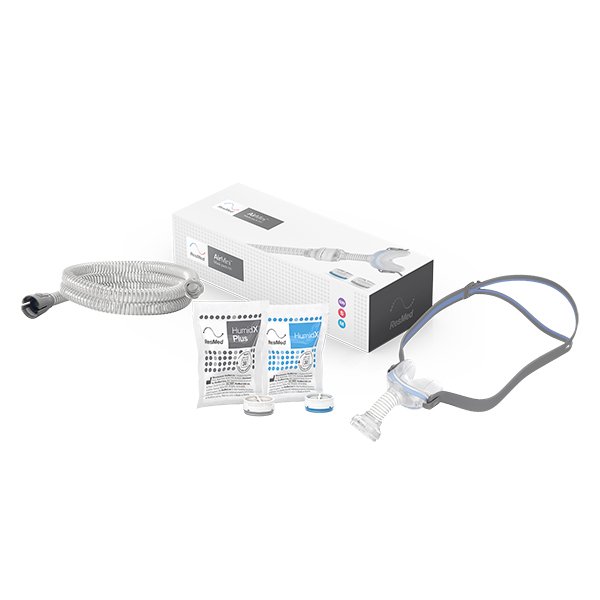 Este pacote inclui o tubo para o dispositivo Auto CPAP AirMini da ResMed e a máscara AirFit N30.