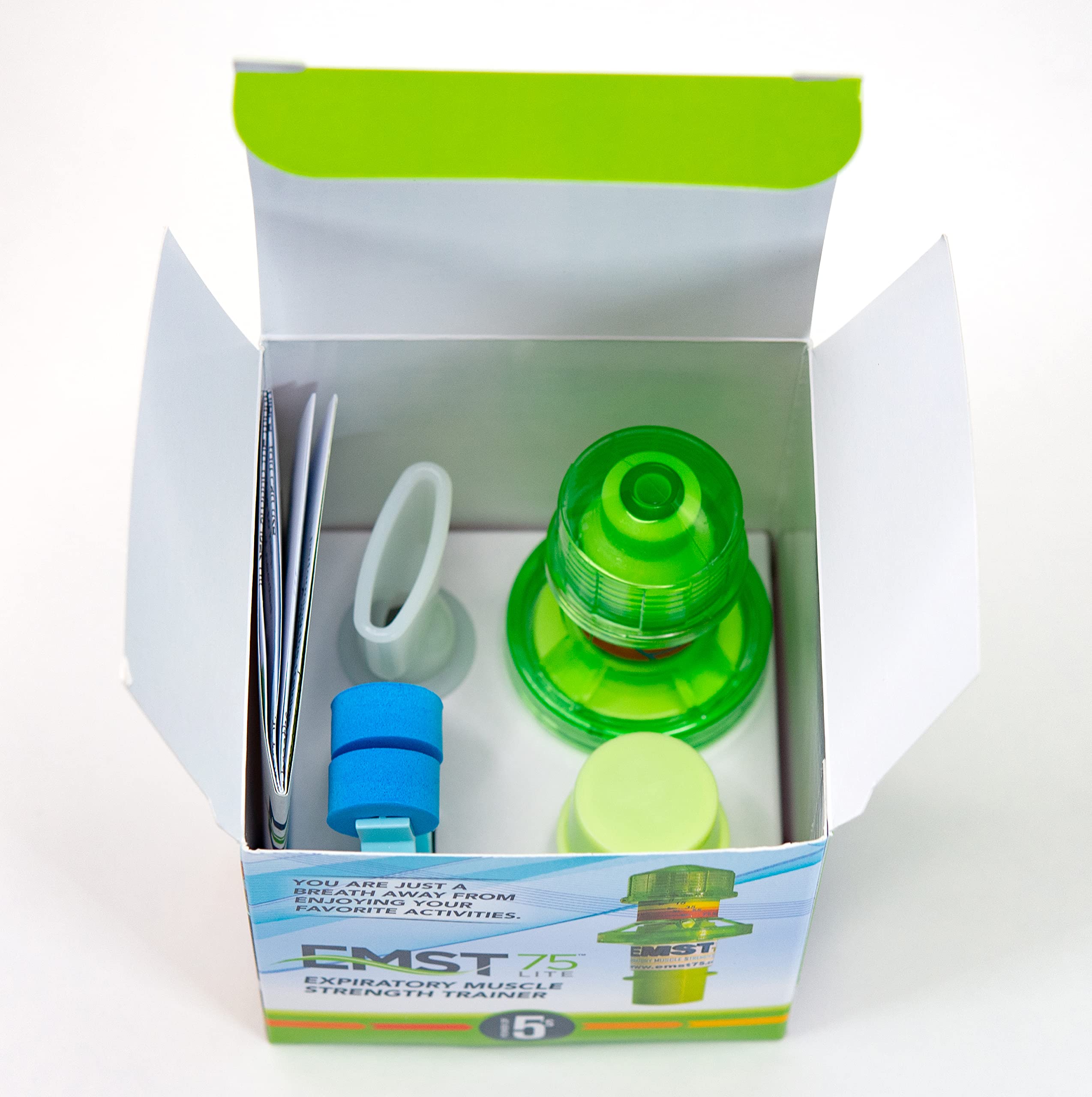 O EMST75 LITE é um dispositivo médico de pressão expiratória positiva (PEP), indicado para pessoas com fraqueza progressiva dos músculos respiratórios, como ELA, Parkinson e esclerose múltipla; pacientes com doença pulmonar obstrutiva crônica (DPOC); câncer de cabeça e pescoço; acidente vascular cerebral; lesão da medula espinhal; e outras condições que causam desobstrução anormal das vias aéreas e produção de tosse enfraquecida. O dispositivo é pequeno, leve e fácil de usar, o que o torna ideal para uso doméstico ou em trânsito.