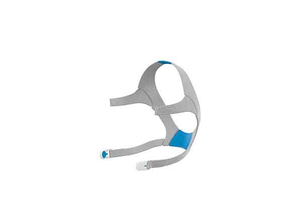 O arnês da máscara ResMed AirFit N20 foi projetado para aumentar o conforto e melhorar o ajuste e a estabilidade da máscara durante a noite.