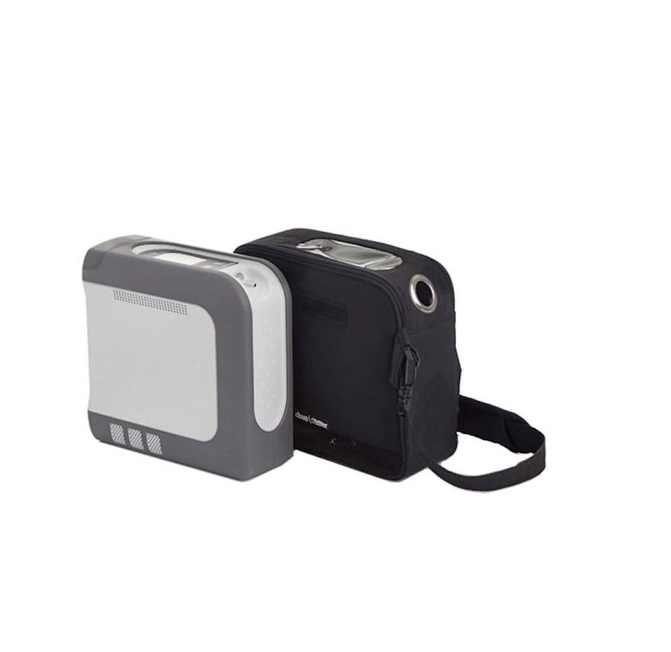 - Muito leve e confortável de transportar: O design deste concentrador resulta num gerador de oxigénio muito pequeno. Como resultado, o conjunto apresenta dimensões muito reduzidas e é muito confortável de transportar. Para aumentar o conforto de utilização, o concentrador de oxigénio portátil DeVilbiss é fornecido com uma bolsa de ombro. Esta bolsa inclui uma pega de transporte a tiracolo e acesso direto aos controlos do concentrador sem retirar o concentrador da bolsa.